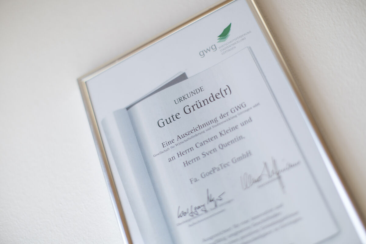 - Auszeichnung der GWG Gesellschaft für Wirtschaftsförderung und Stadtentwicklung Göttingen mbH „Gute Gründer“